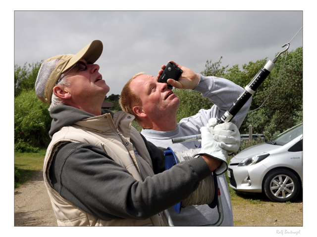 Wir messen Drachen: Höhenwindmesser, Laserentfernungsmesser und Zugkraftmessgerät im Einsatz.